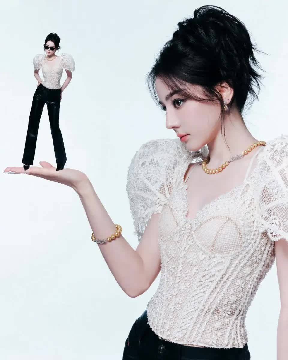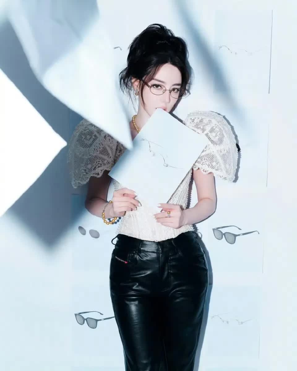 而领口和衣服本身则更像紧身胸衣,展现出迪丽热巴迷人身材!下半身不像上半身这样甜蜜性感,而是选择了酷酷得黑色皮裤!高腰设计让她看起来又细又长!腰部以下全是腿具像化了!